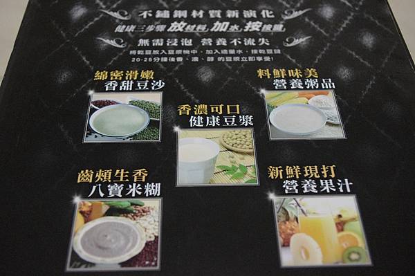 箱外說明,不只可以煮豆漿,還可煮粥,豆沙,米糊,打果汁