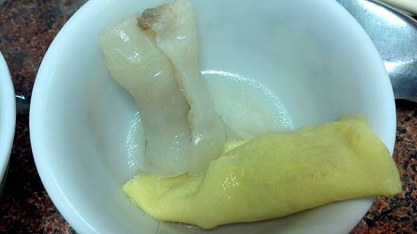 煮後的皮和蛋餃,這家的火鍋料較少見,和一般的火鍋店不一樣